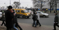 Plötsligt puttas jag till av att en grupp yngre personer kommer tågande på min sida av gatan och ropar ”Это наш город!” (”Detta är vår stad”, ehm, va…?). Jag rör mig snabbt åt sidan in mot husväggen för att inte hamna mitt bland dem. Strax därefter kommer de springande tillbaka ropande ”Россия без Путина!” (”Et